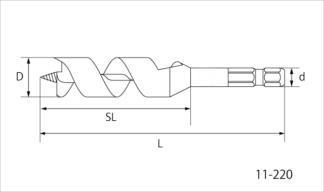 Size:D Overall Length:L Spiral Length:SL Shank Shape:d Unit:mm