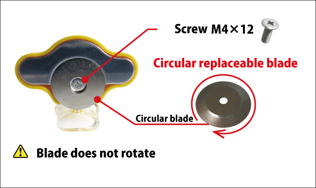 The circular blade can be used 360 degrees. Loosen the fixing screw and rotate the blade a little to fit the unused part and retighten the fixing screw.