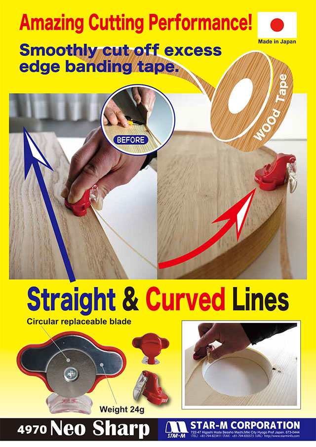 Firmly pinch the protruding veneer tape between the clip and the blade (circular blade), and slide it over the base metal.