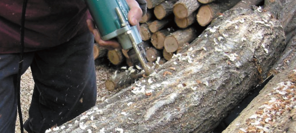 ①Drilling holes in a natural log