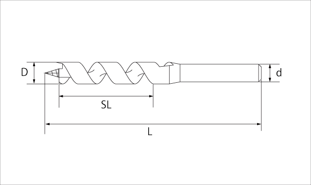 Size:D Overall Length:L Spiral Length:SL Shank Shape:d Unit:mm