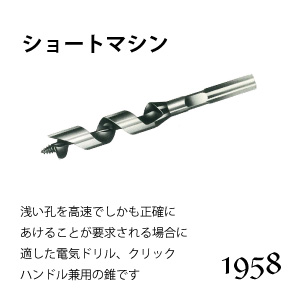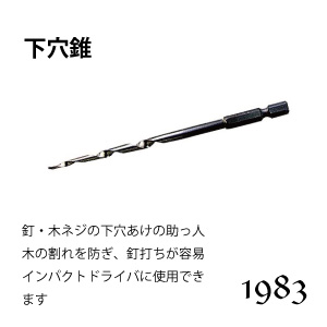 ギムネを作り始めてから間もない頃のこと。当工場製のリングオーガーを使っていた大工さんが、桁に穴を開けようとしていて仰向けの不安定な姿勢でリングオーガーを回し始め先端の誘導ネジがやっと食い込むや否や足場が崩れてリングオーガーの柄を掴んだまま宙ぶらりんとなってしまった。この時命綱となったのが他でもないこの「誘導ネジ」である。しっかりと木材に食い込んで折れもせず外れもせず、人間一人を吊り下げ通してくれたので危うく難を免れたのであった。後日、その大工さんの事業主に出会った時にその模様を嬉しそうに話してくれた。仕事がきちんと出来ていたからこそのことで、やはり仕事は端々にまで魂を込めて当たることが責務であり誇りでもある。(ホシエム50年のあゆみより)