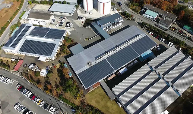 環境保全の一歩として、2004年に太陽光発電のソーラーパネルを当時の民間企業では国内上位に入る規模で工場に導入いたしました。現在もメンテナンスを続け稼働しております。