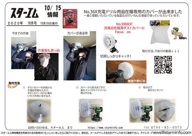 充電ドリル用自在錐に取付けできるダストカバー。切屑をしっかりキャッチで天井作業も安心