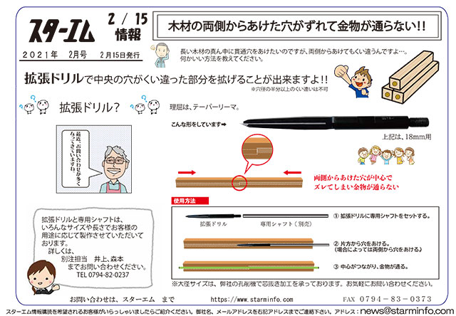 材の両側から穴をあけたら中心部がずれてしまった!そんな時は拡張ドリルの出番です