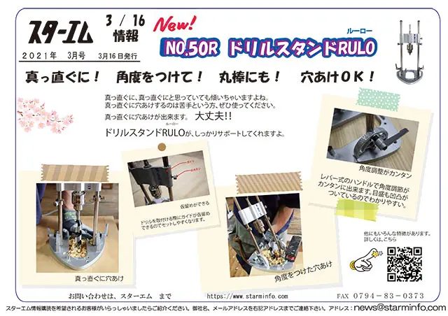 穴あけの補助具。垂直穴も斜め穴加工もドリルスタンドRULOがサポートします