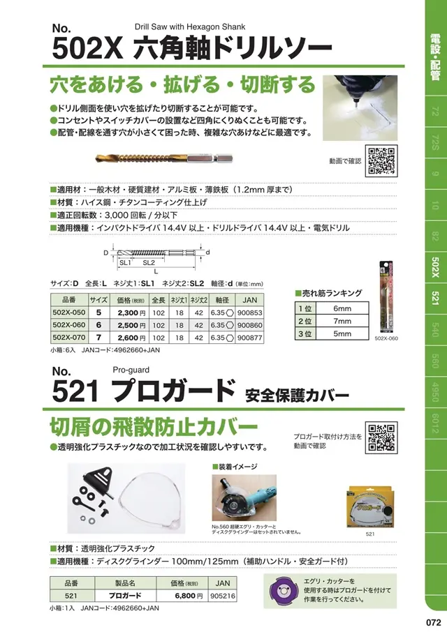 No.502X 六角軸ドリルソー/ Drill Saw with Hex Shank