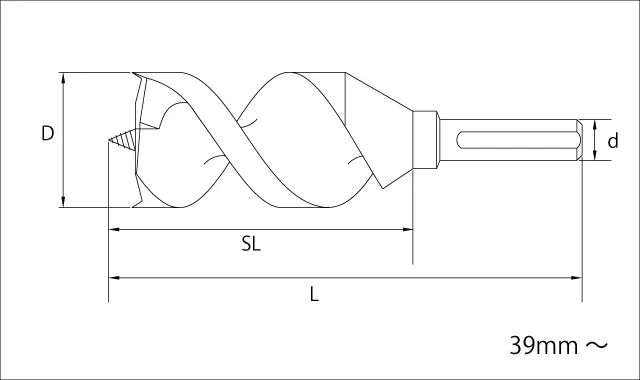 - 38mmまでは片刃片爪タイプ、39mm以上は切削抵抗を考慮した両刃両爪タイプです