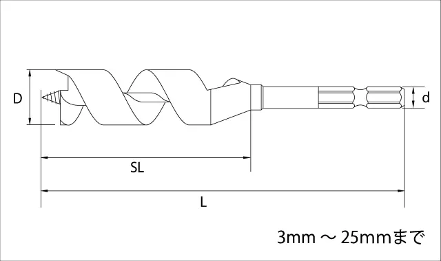 - 全サイズがインパクトドライバ対応の6.35mm六角軸です