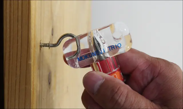 下穴をあける・ビス締めをする・ヒートンを取付ける
