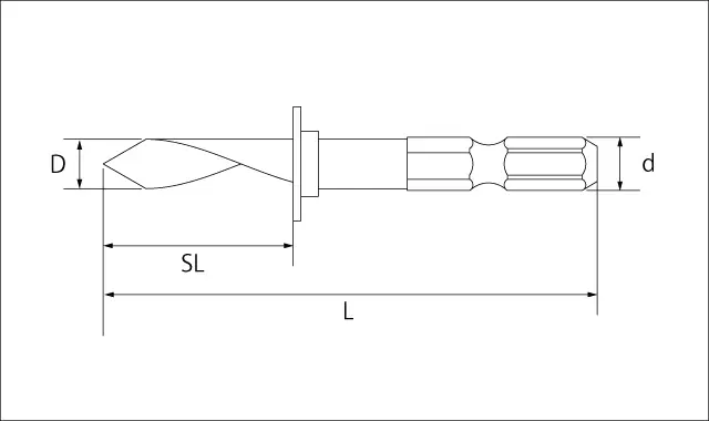 サイズ:D 全長:L ネジ丈:SL 軸径:d / 単位(mm)