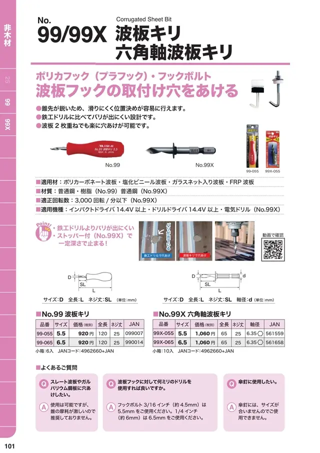 No.99 波板キリ・六角軸波板キリ/ Corrugated Sheet Bit