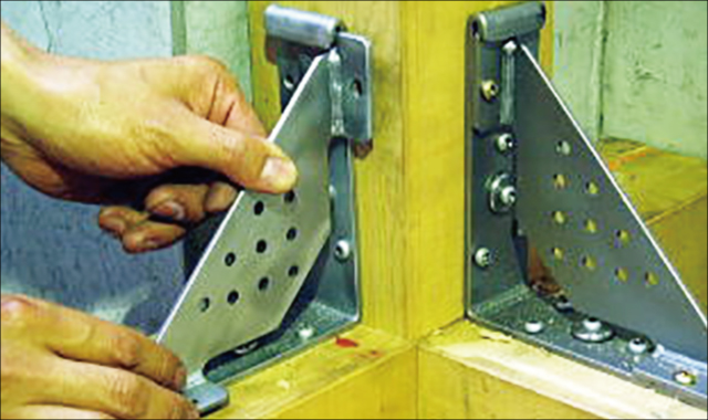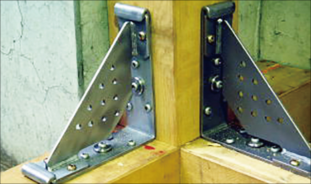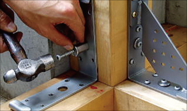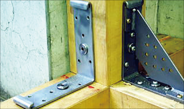 ⑤筋交い取付けプレートをアングルにセットします