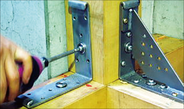 ④込栓(ブッシュ)2個と木ネジ8本でアングルを固定する