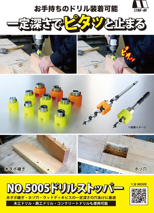 - 止めたいところでピタッと止まるので一定深さの穴あけが可能です
