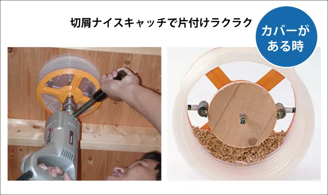 カバーがあればバラバラ落ちてくる切屑もしっかりキャッチしてくれるので、後片付けがラクになります。