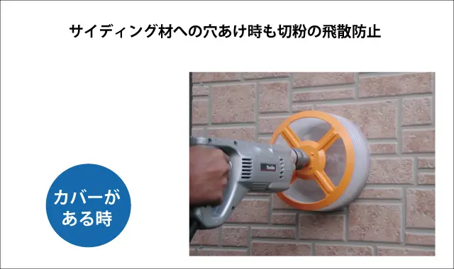 意外に飛び散るのがサイディングの切粉です。カバーがあれば飛散を軽減してくれます。
