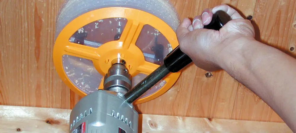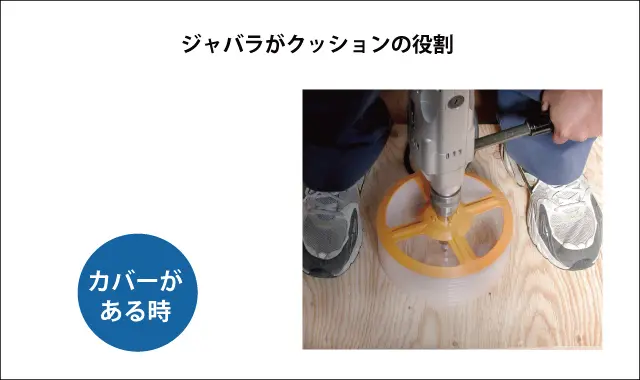 ジャバラがクッションの役割をしてくれるので、貫通時の衝撃をやわらげてくれます。また、ジャバラがあることで接地面が出来るので安定した穴あけが行えます。