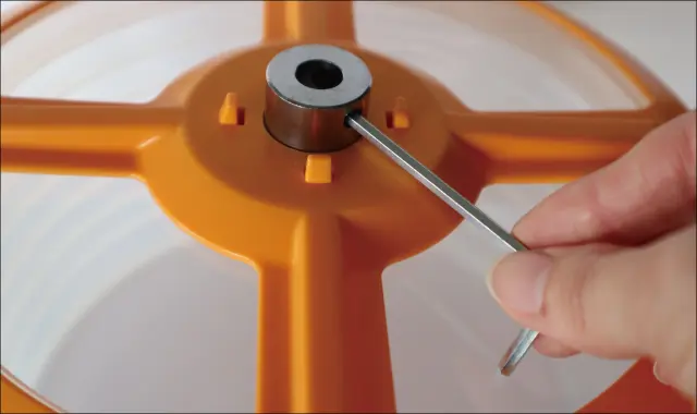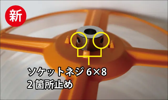 ④ソケットネジを軸の平取り部分でしっかり締め付ければ完了です