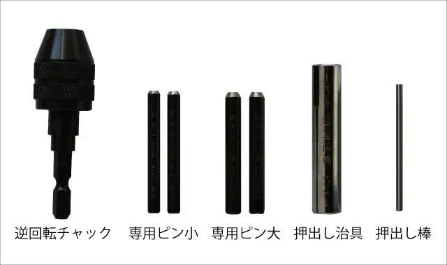 ※セット内容:逆回転チャック・専用ピン小/大・押出し治具・押出し棒