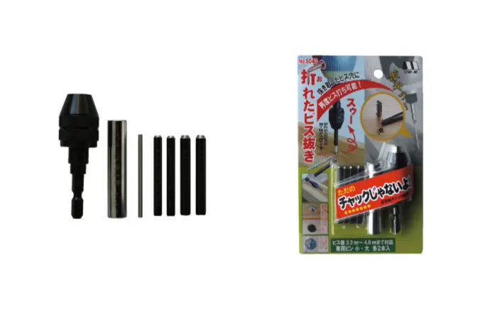 - ビスが材の表面より10mm以上突起した状態で折れ込んだ場合は、ビスを直接逆回転チャックでつかんで抜くことも可能です