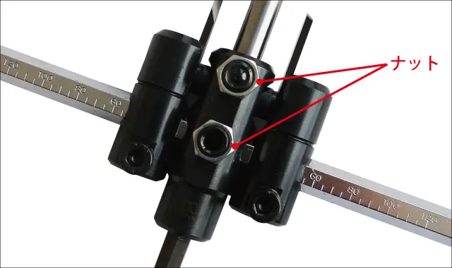 ネジの緩みは、センタードリルの抜けやバーのがたつきなどに繋がりますので、ご使用前には各所のネジがしっかりと締まっているかをご確認ください。