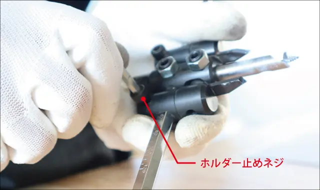 ②ホルダー止めネジを緩め、ホルダーを抜く