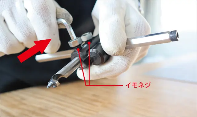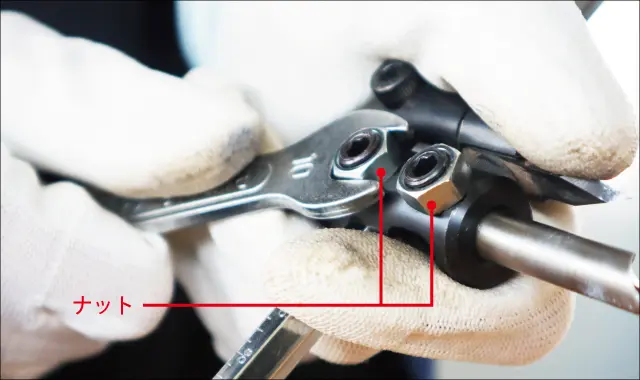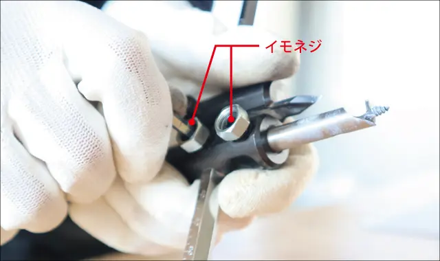 ①ナットを外した状態で、イモネジをしっかりと締めます
