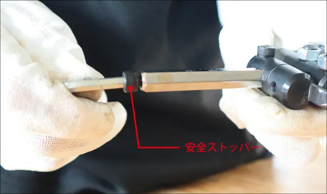 また、軸が半がかりの状態でご使用になられると軸折れの原因となりますので、ご使用前には軸がしっかりとセット出来ているかをご確認ください。