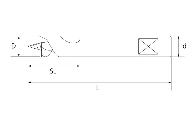 サイズ:D 全長:L ネジ丈:SL 軸径:d / 単位(mm)