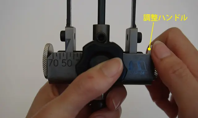 ③サイズを合わせたら、黒ハンドルを2ヶ所ともしっかりと締めます
