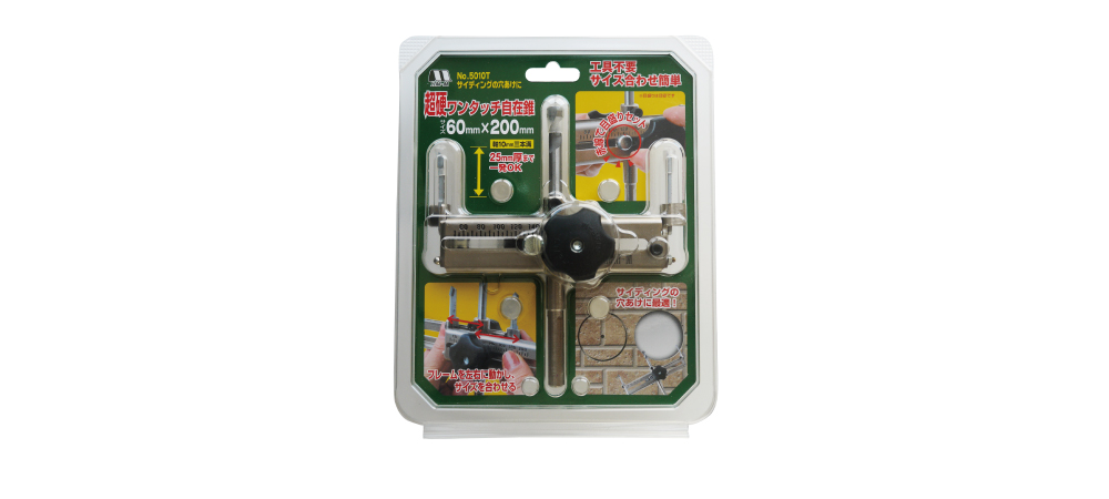 1台でサイディングに60mm~200mmの穴あけができる自在錐