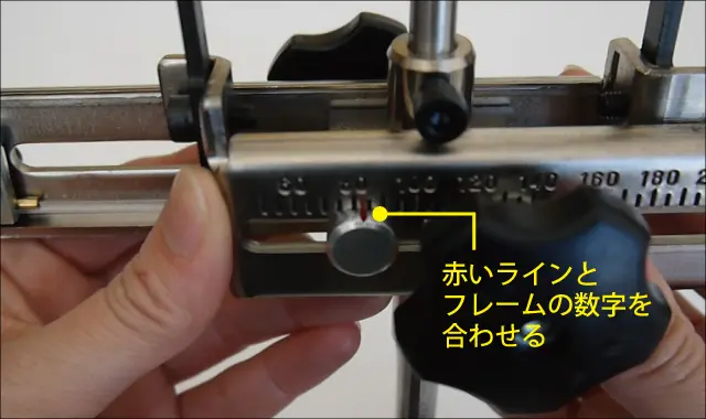 固定ボルトの赤いラインを目盛に合わせます