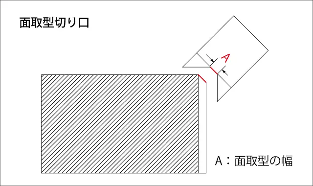 - 面取型・角型は面が取れる幅を示しています。面取型0.6mmの場合はAの箇所が0.6mmとなります。