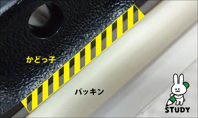 ②防虫パッキン用かどっ子を前後にスライドさせます