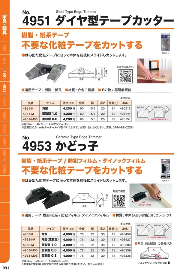 | 4953-M06 | 面取型0.6 | 76 | 22 | 30 | 4,000円 | 4962660495359 |