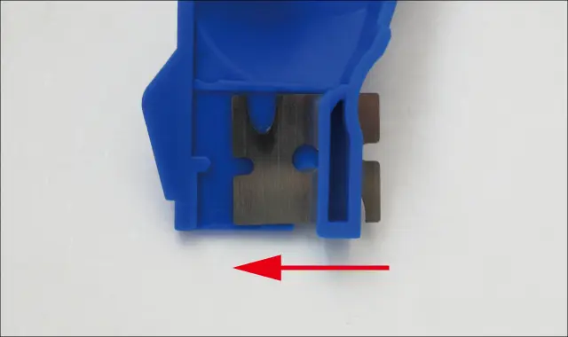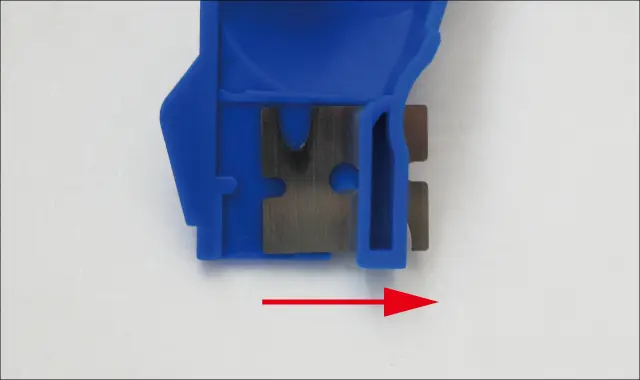 ②刃を矢印の方向にスライドさせます