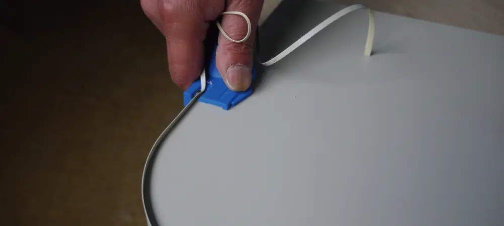 化粧テープや木口テープのはみ出した部分をカットする