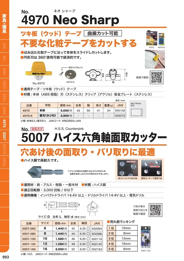| 品番 | 全長 | 幅 | 高さ | 価格(税抜) | JANコード |