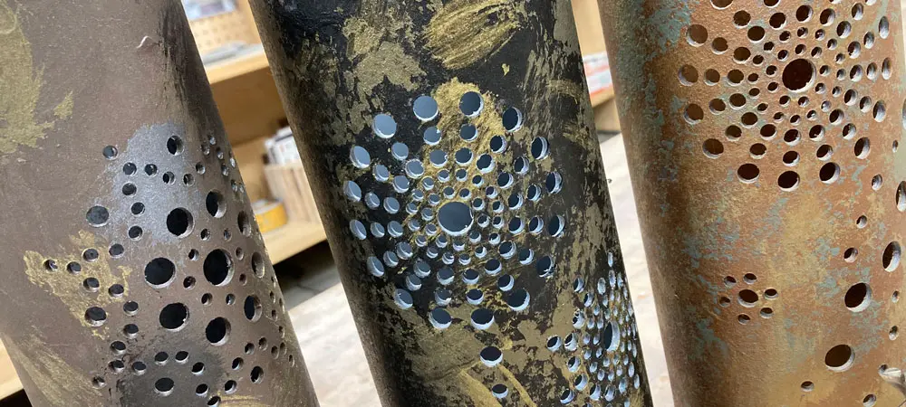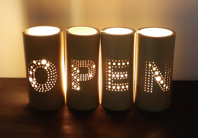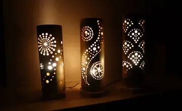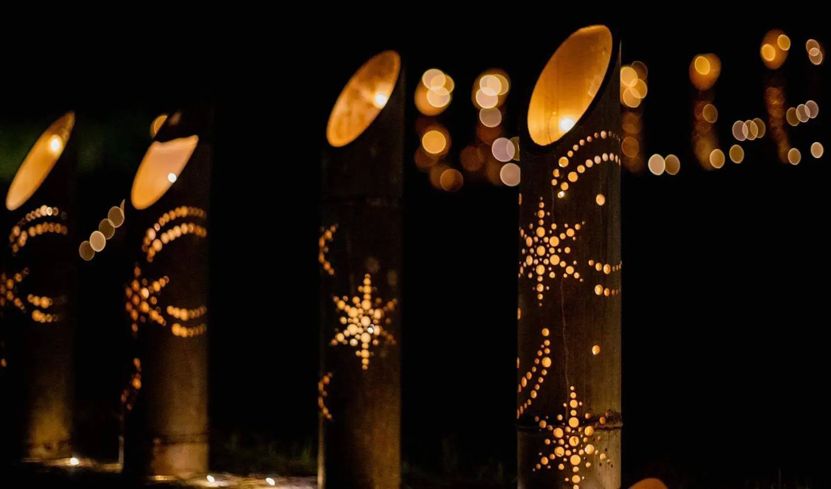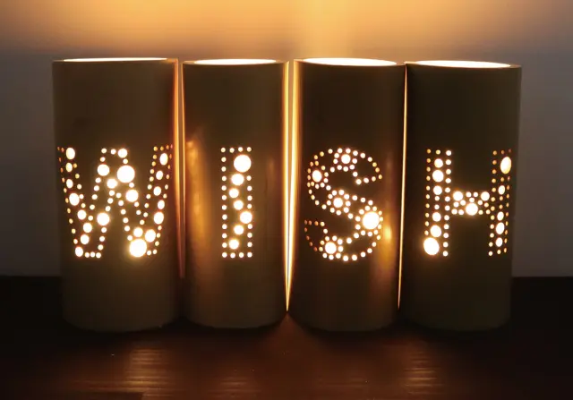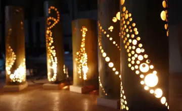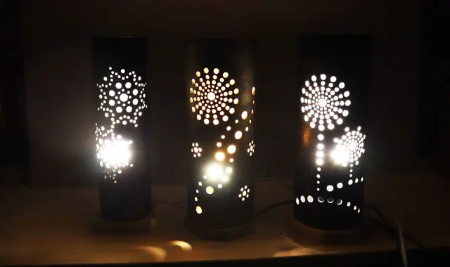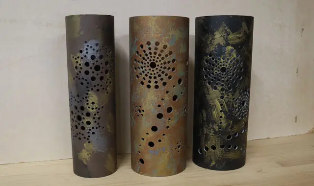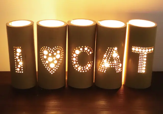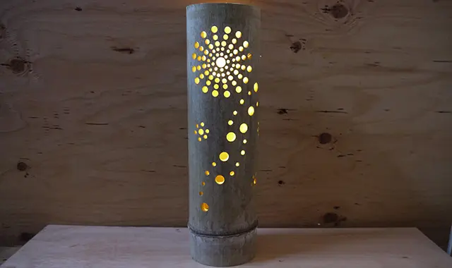竹がない場合は、ホームセンターで購入できる塩ビパイプを活用。塩ビパイプがおしゃれなあかりへと変身! 塗料はアイアンペイントを使用しています。