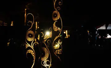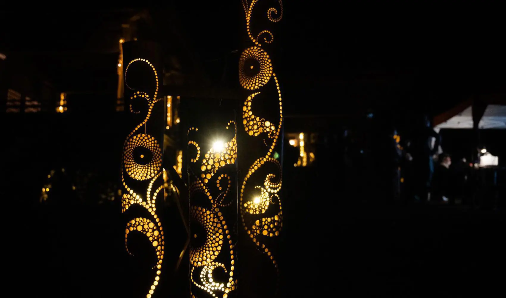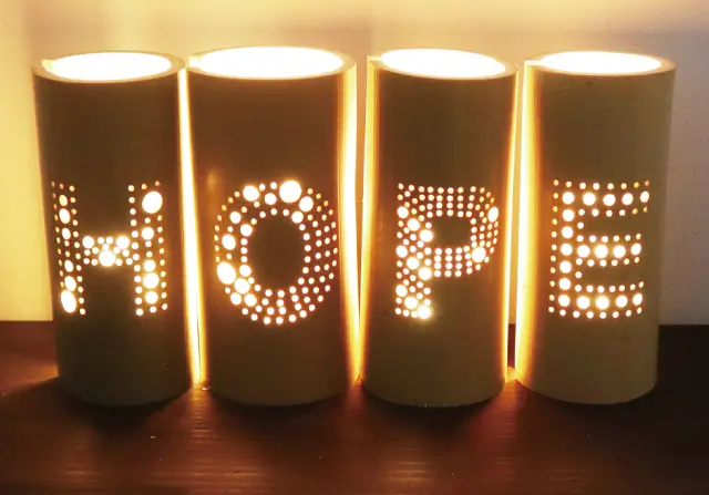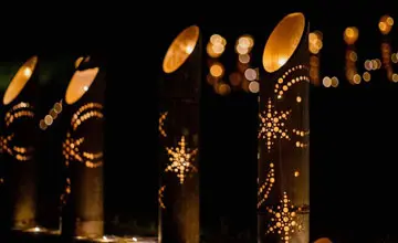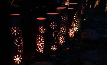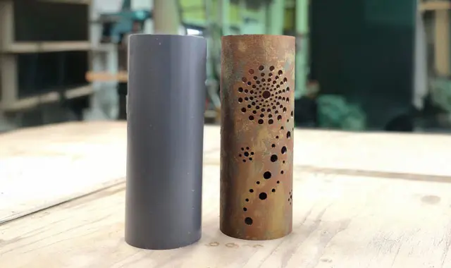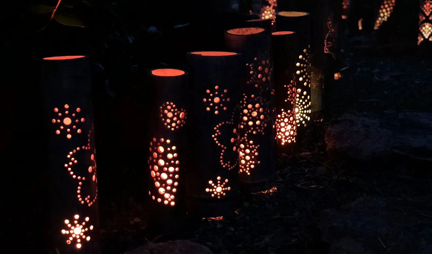 竹がない場合は、ホームセンターで購入できる塩ビパイプを活用。塩ビパイプがおしゃれなあかりへと変身! 塗料はアイアンペイントを使用しています。
