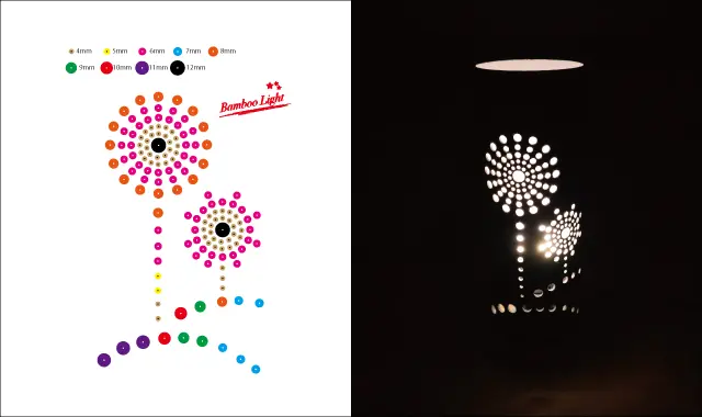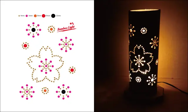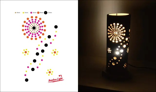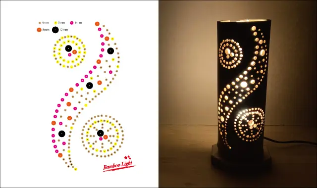 これらのデザインは、竹用ドリルを使ってあかりやウッドスピーカーづくりを楽しんでいただくお手伝いができればという思いでダウンロードできるようにさせていただいております。