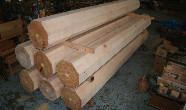 高野山開創1200年記念大法会の行事のひとつに伽羅中門再建事業がありました。中門の柱となる吉野ヒノキの芯抜き加工を弊社にて行いました。