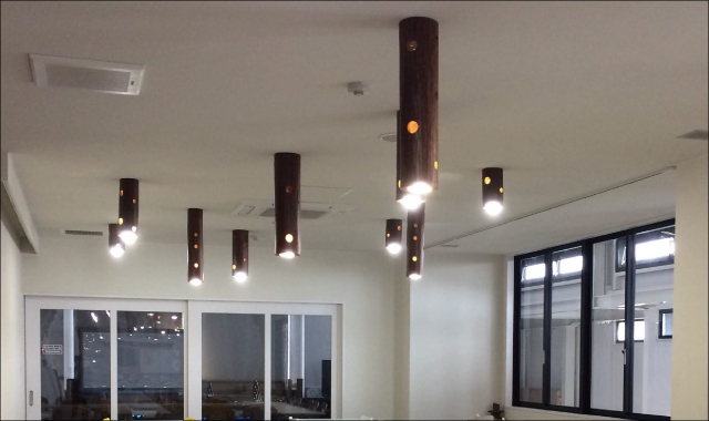 その他にも神社の柱の補修や事務所の照明用の芯抜き加工などを行った実績もございます。