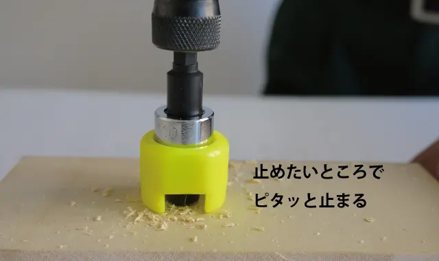 【ピタリと止まる】ドリルストッパーをセットすることで、一定深さの穴あけが可能です