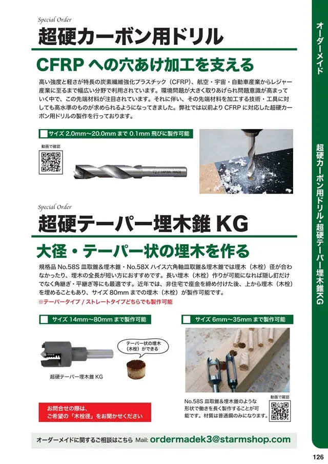 実際にCFRPに穴あけ加工をされている方にお話を伺いますと、鉄工ドリルや竹用ドリルを使って穴をあけておられるそうです。しかしながらバリが出る、耐久性がないという問題を抱えておられます。