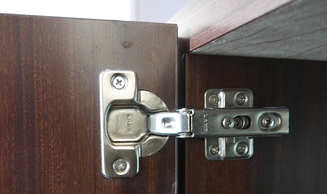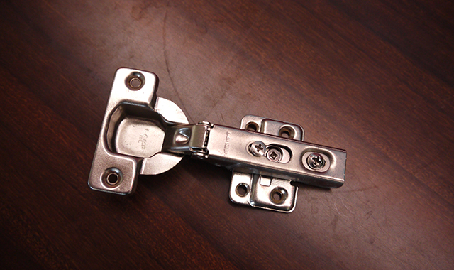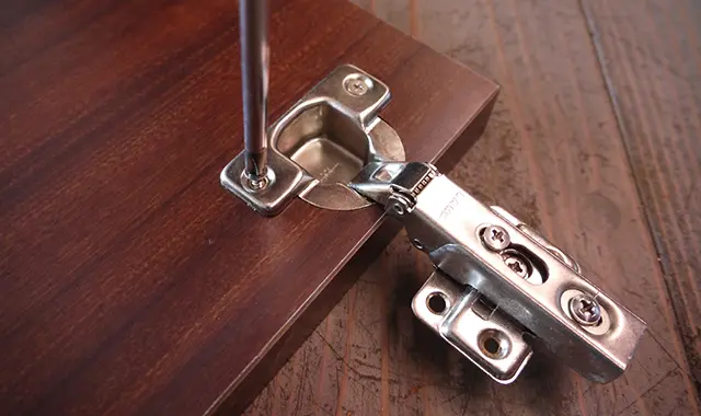 ③スライド丁番のカップを加工穴にはめ込み、しっかりとネジで固定する
