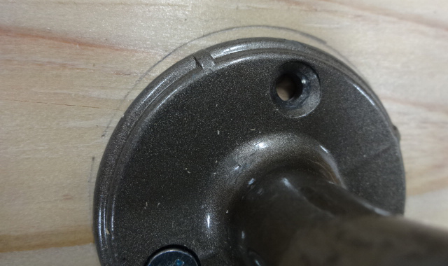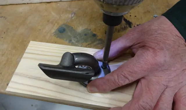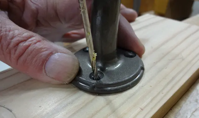 丁番、手摺金具の皿穴の中心に一発で穴をあける