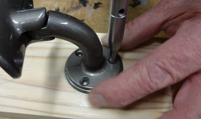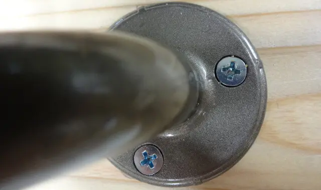 - 取付け金具の皿穴の中心に下穴があくので、ビスを締めた時に金具がずれません