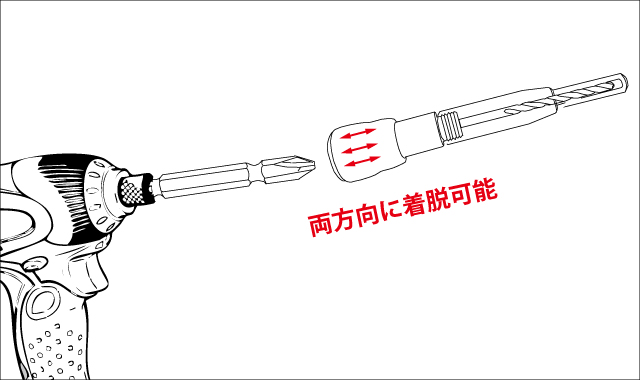 ②ビットにセンター一発を取付けます(両方向に着脱可能)